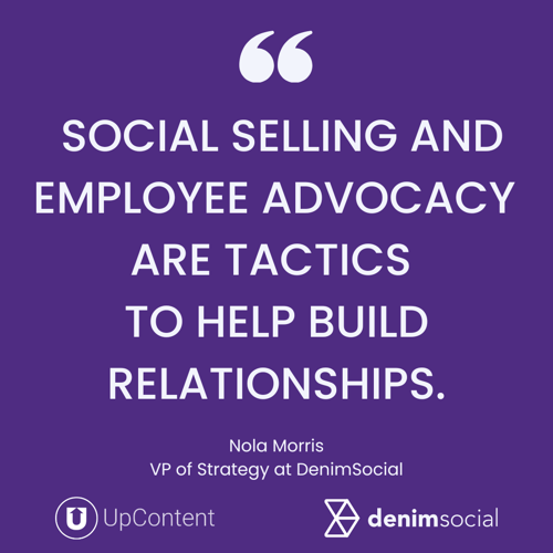 We talked with Nola Morris, VP of Strategy at UpContent partner DenimSocial, about the differences between social selling and employee advocacy, how the line can blur, and how both can drive meaningful digital relationship building.